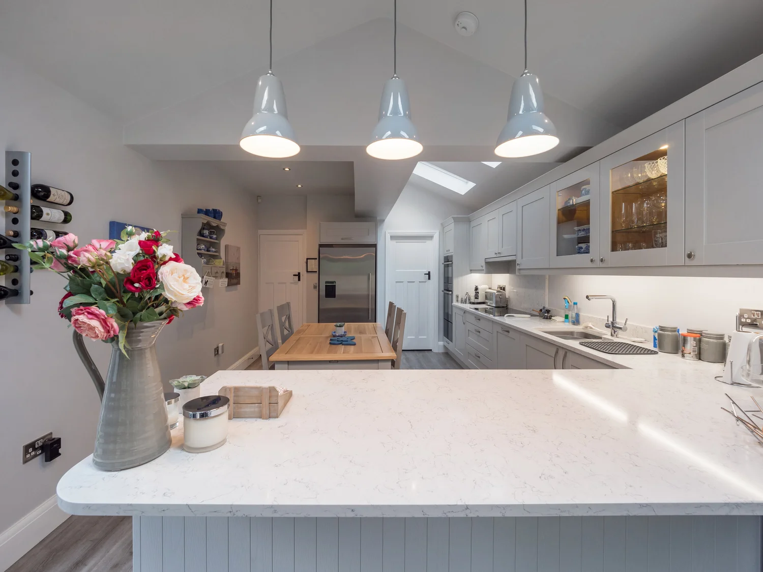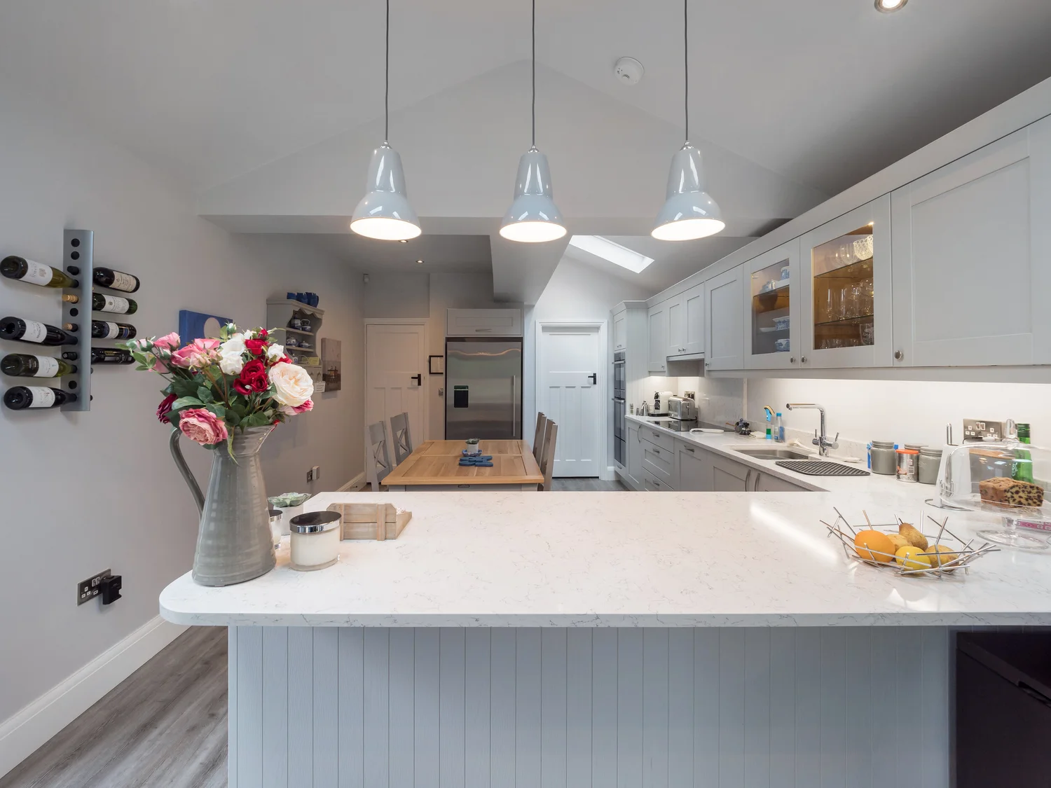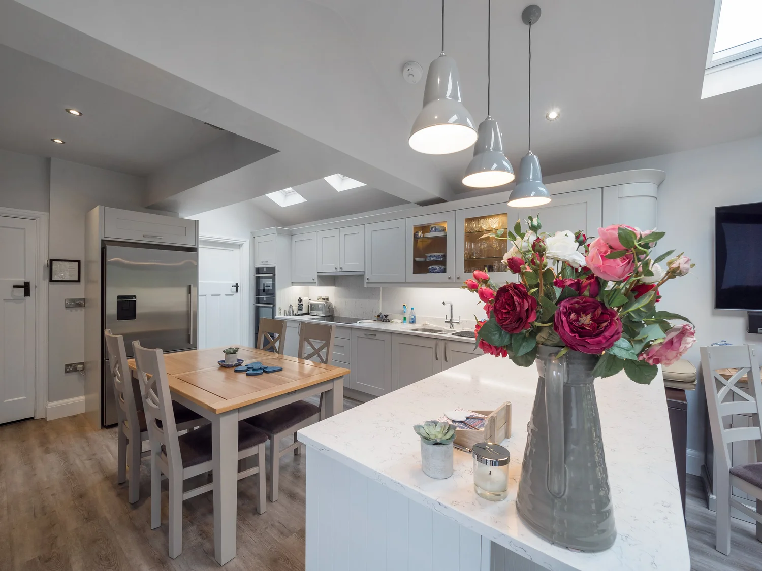 With a dual-aspect layout and carefully positioned roof lights, the space is filled with natural light from morning through to evening. The result is a welcoming, versatile extension that enhances family living and brings a strong connection to the outdoors.