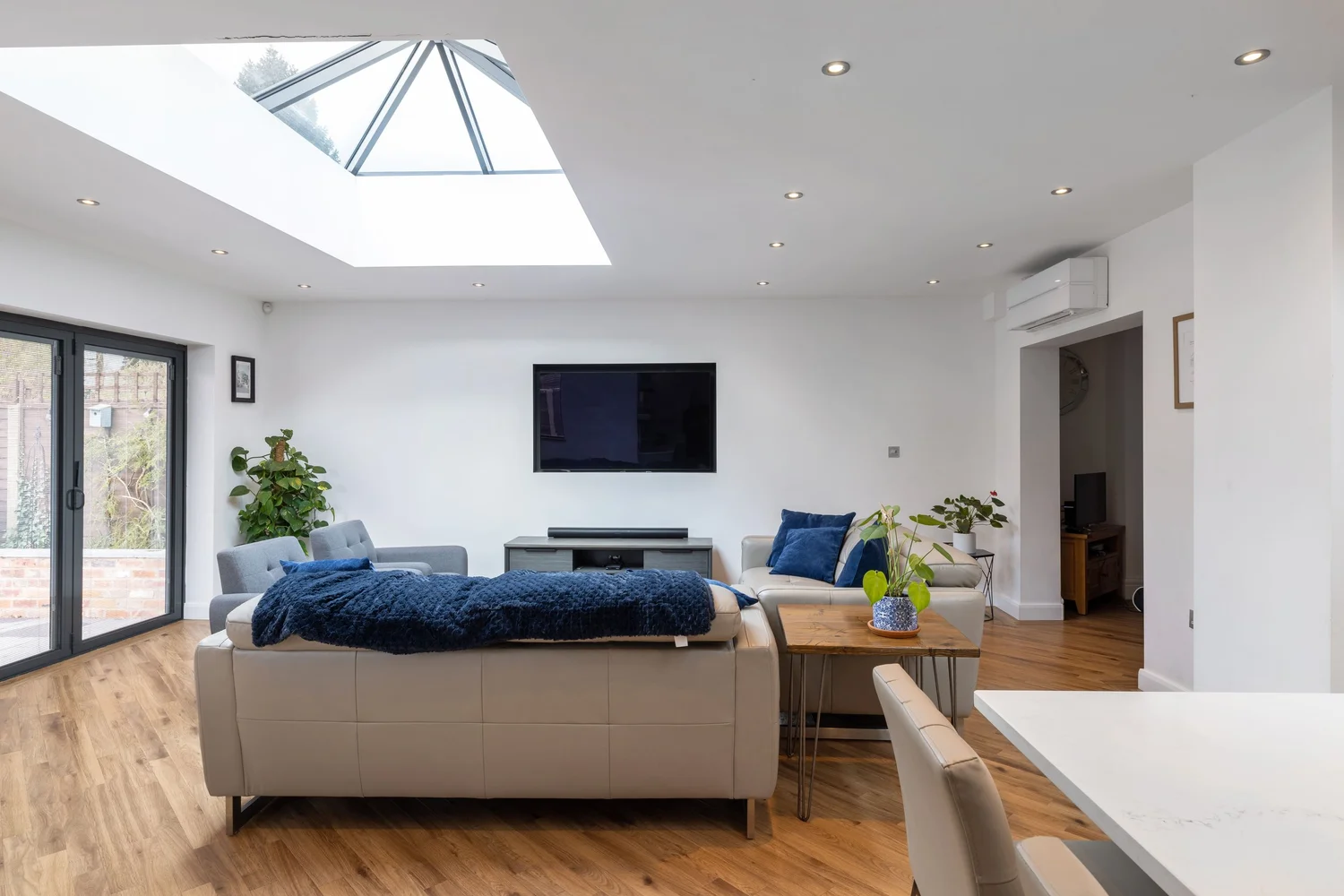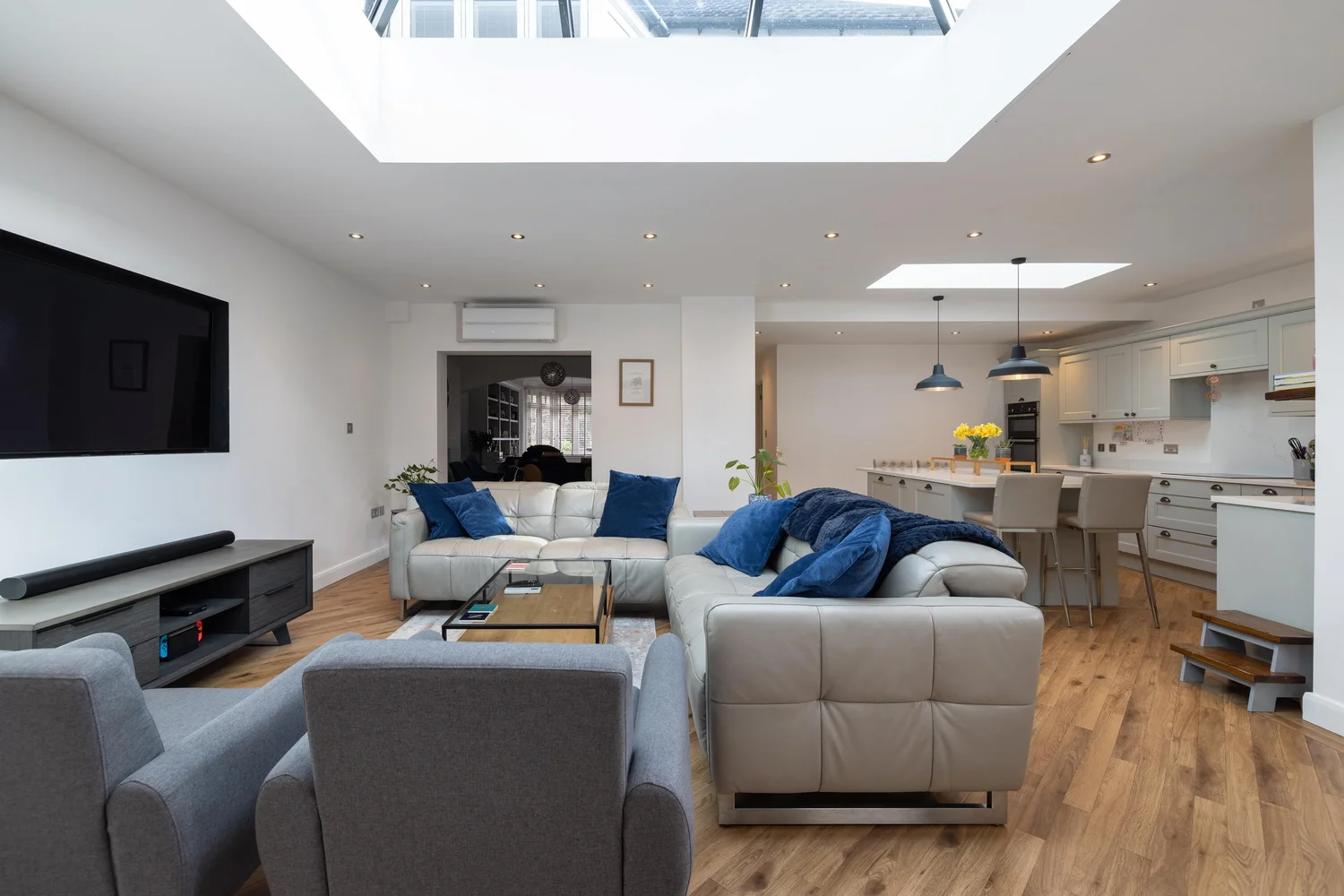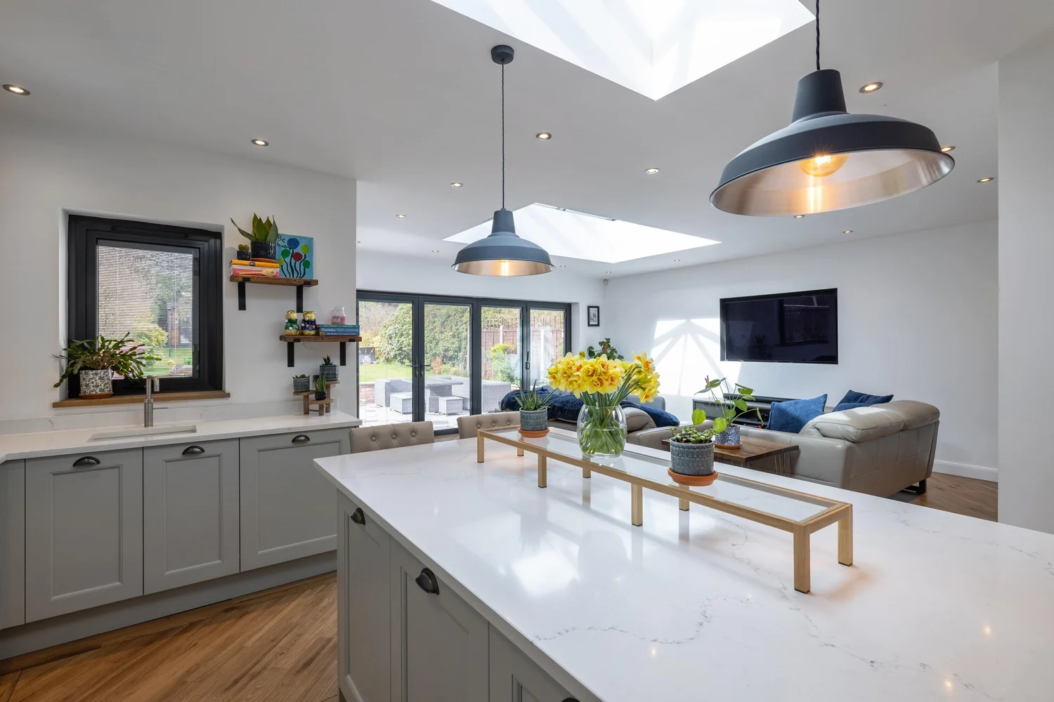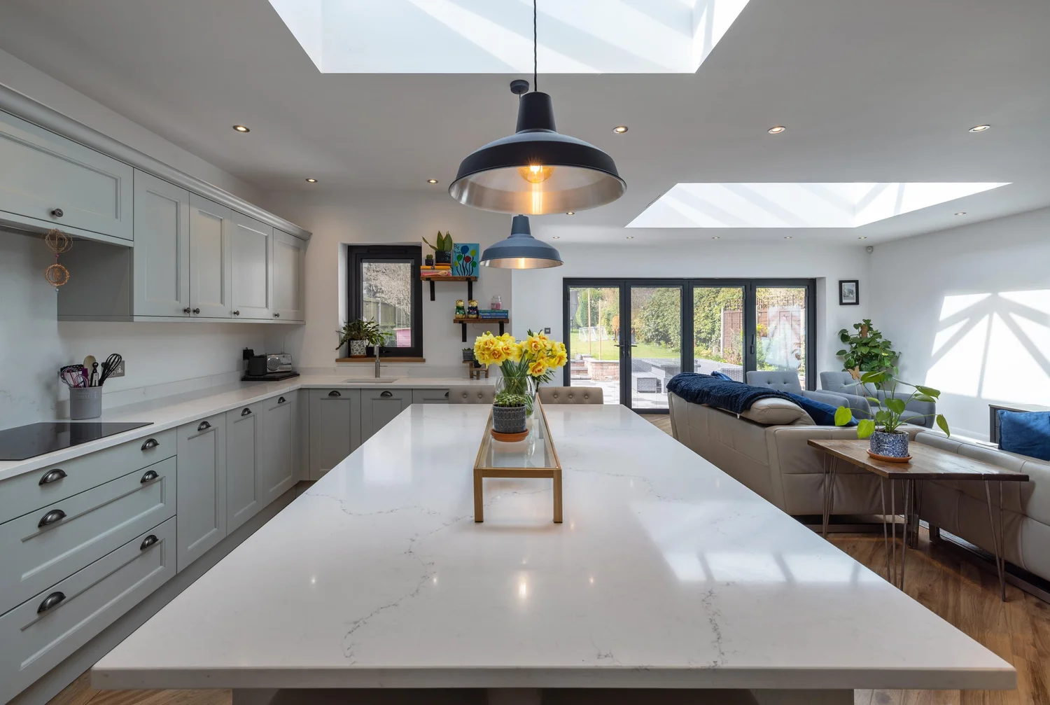 The design created a large open-plan kitchen, dining, and living area, complemented by a practical utility room. The result is a bright, functional hub that suits family life perfectly—turning previously underused space into the most important part of the home.