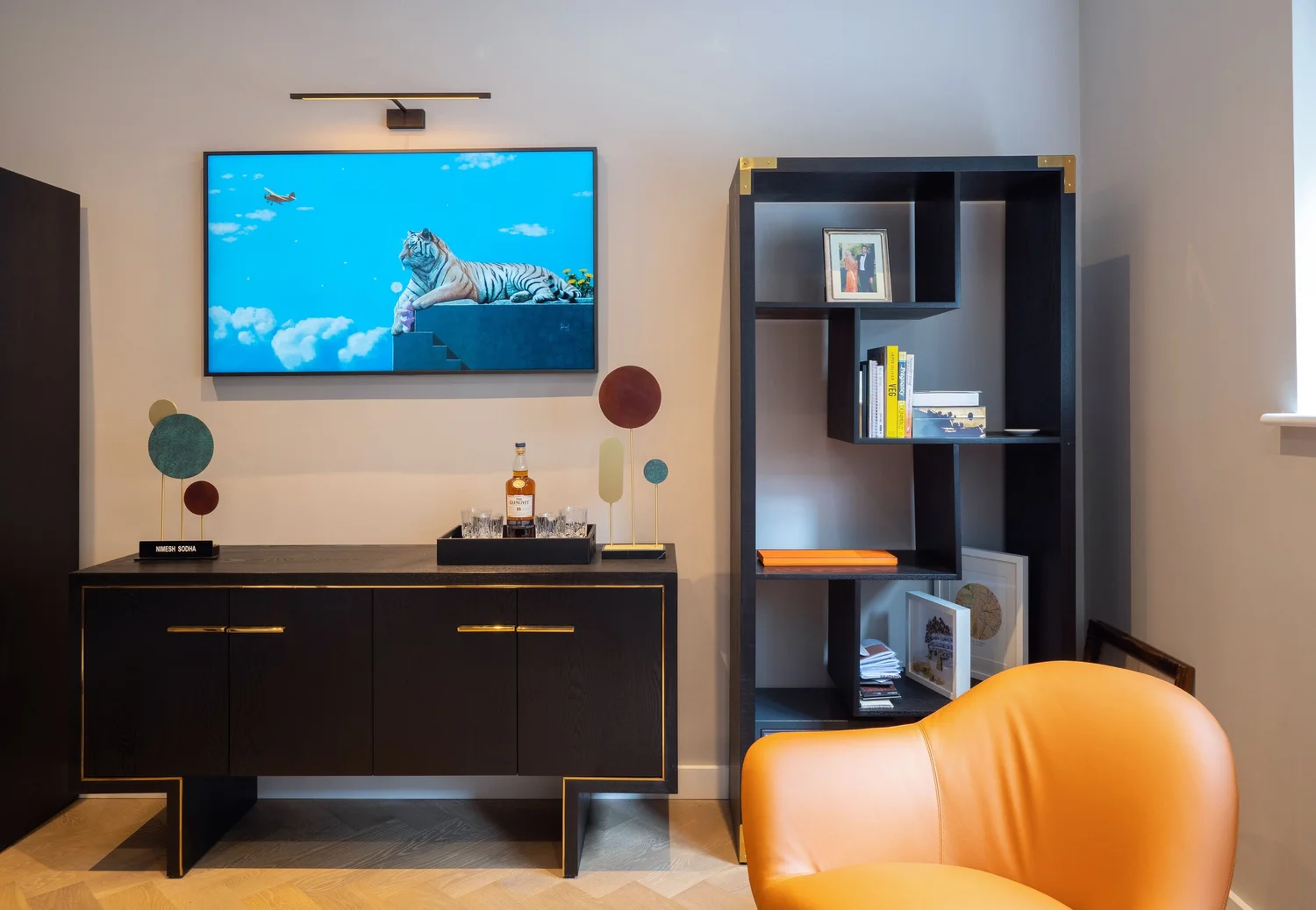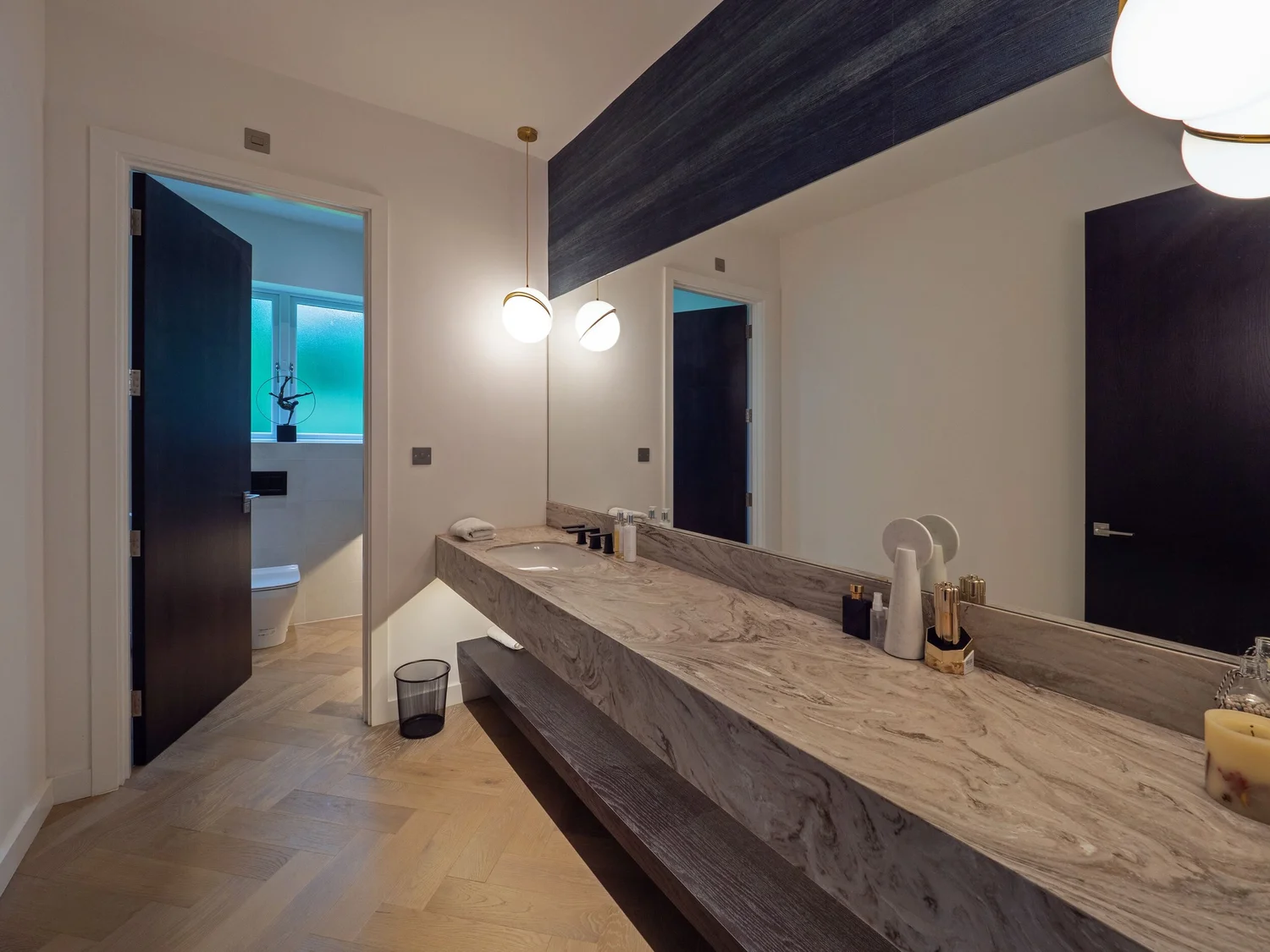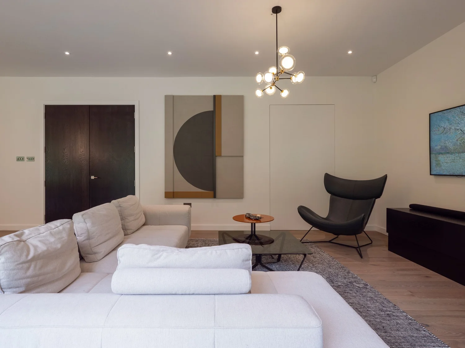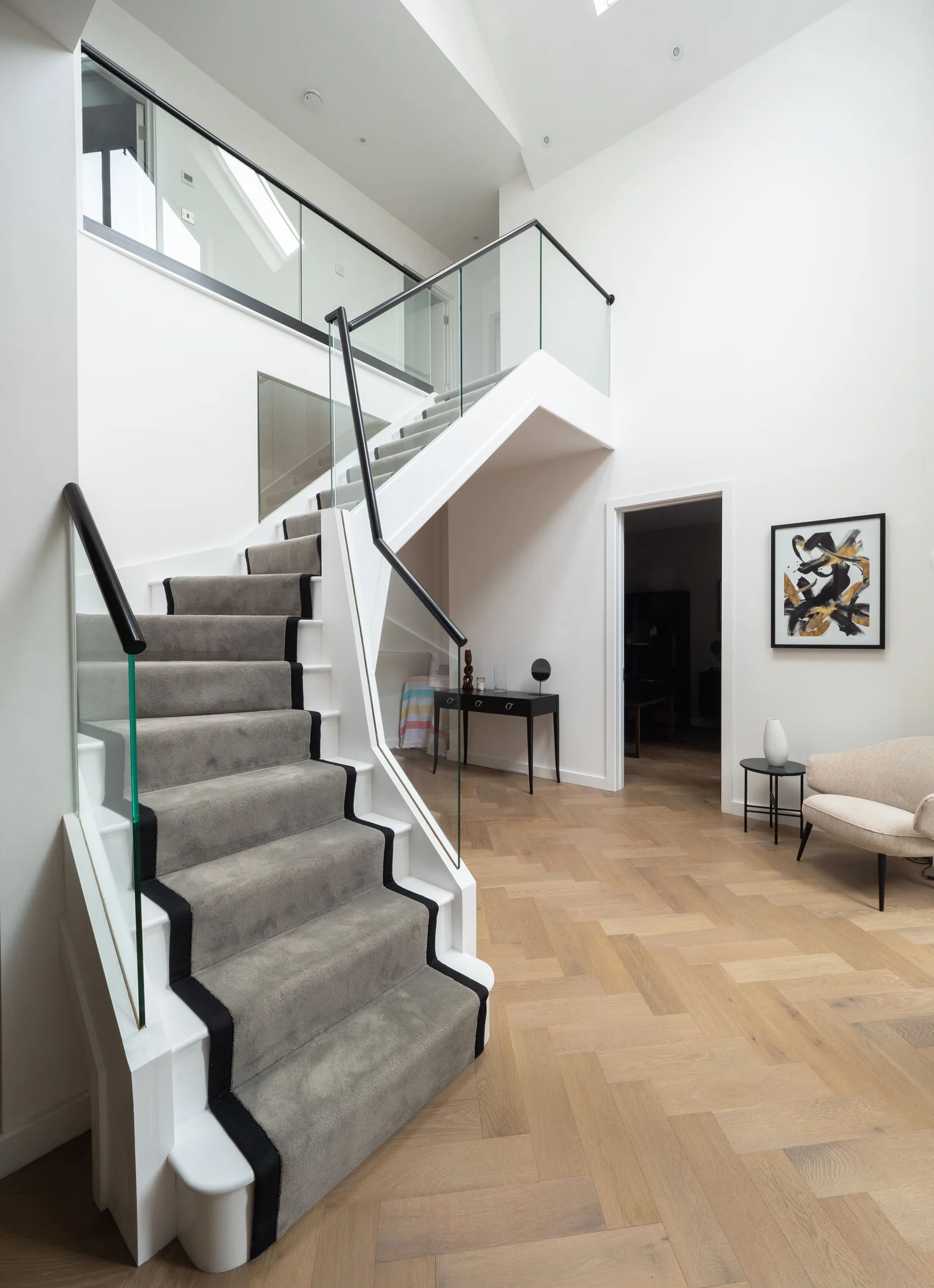 The finished project includes a double height entrance hall, large open plan kitchen and living area, gym, Juliet balconies.