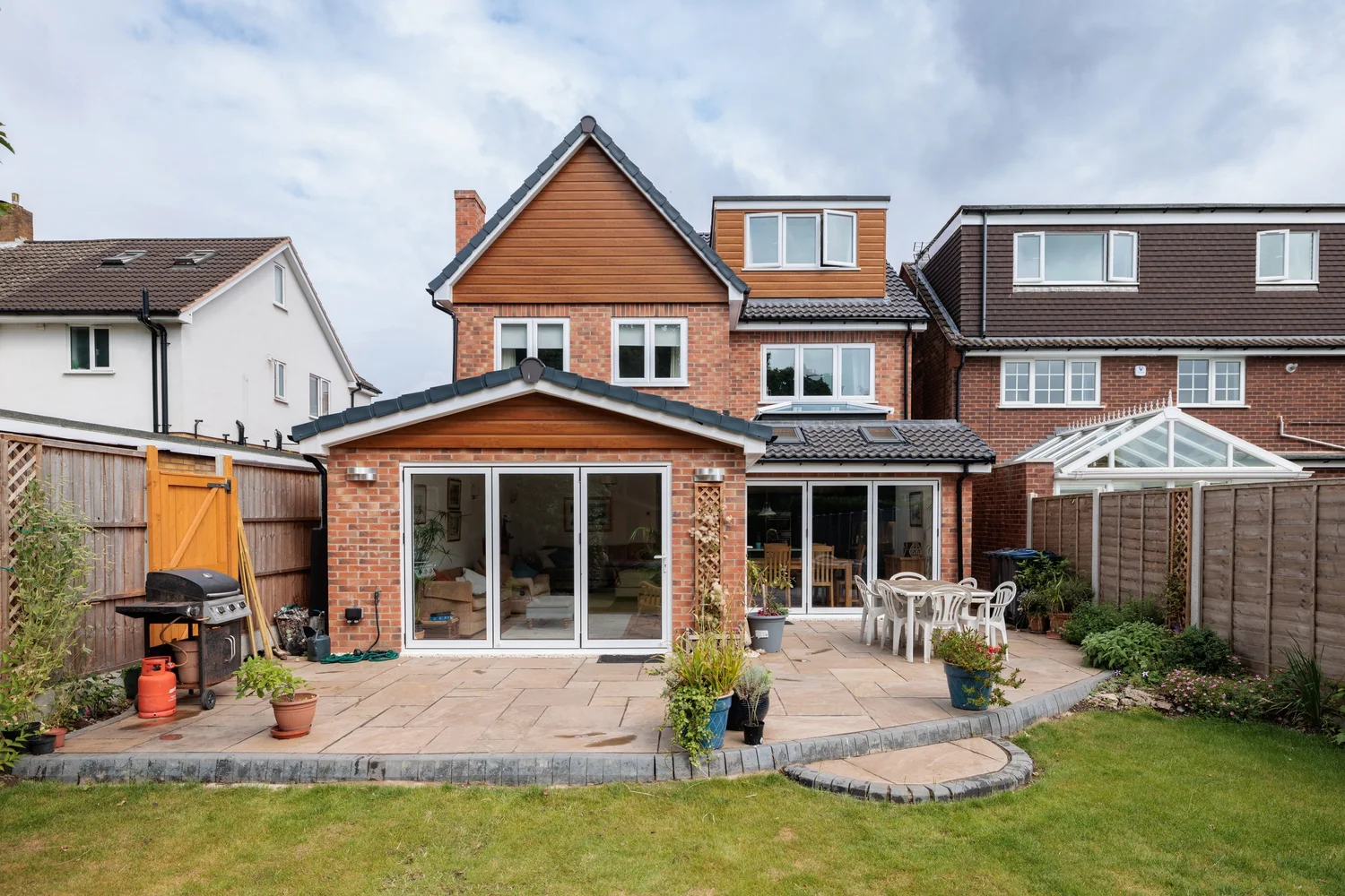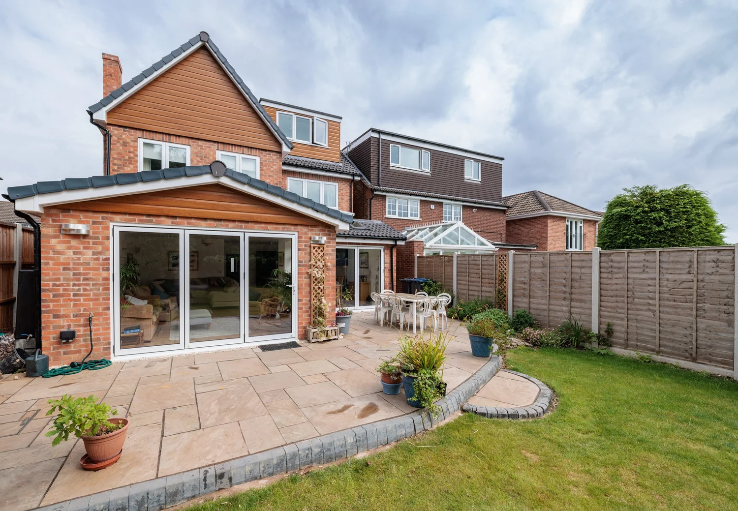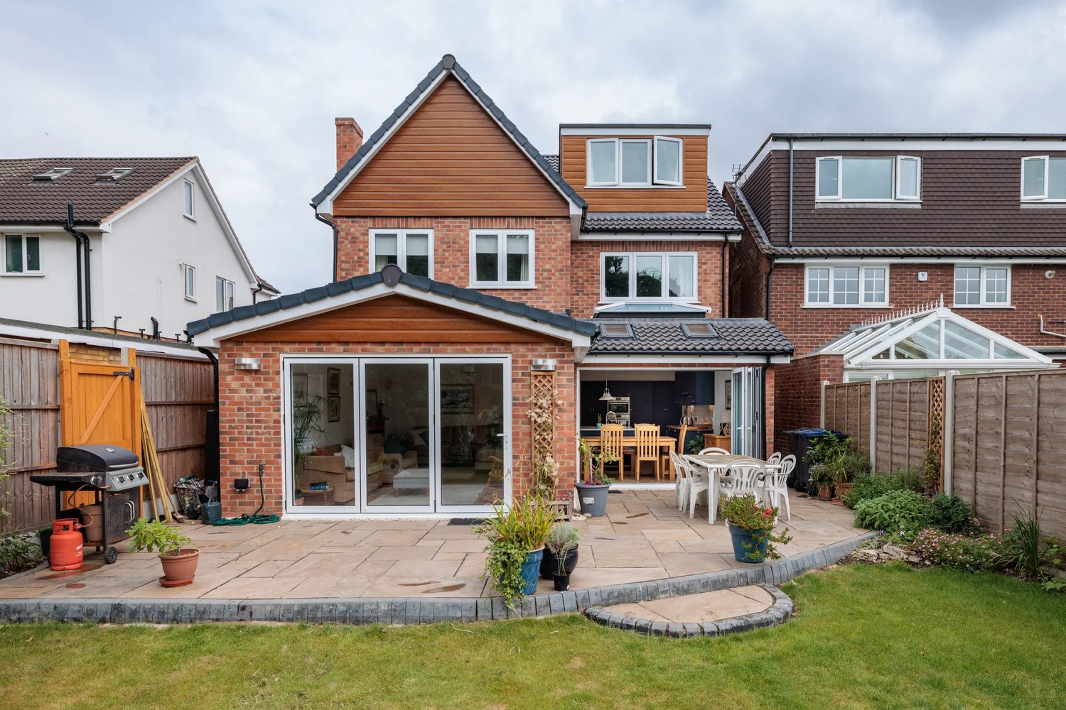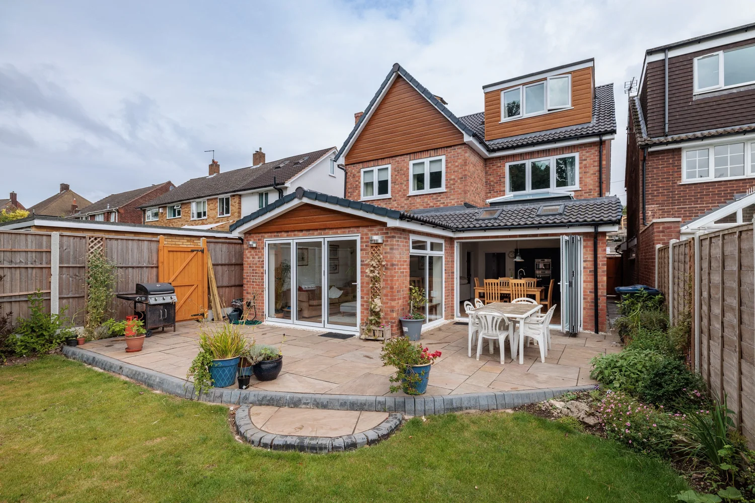 With its bold architectural design and striking presence, this new build stands out as a statement home while offering practical, flexible spaces across all three floors.