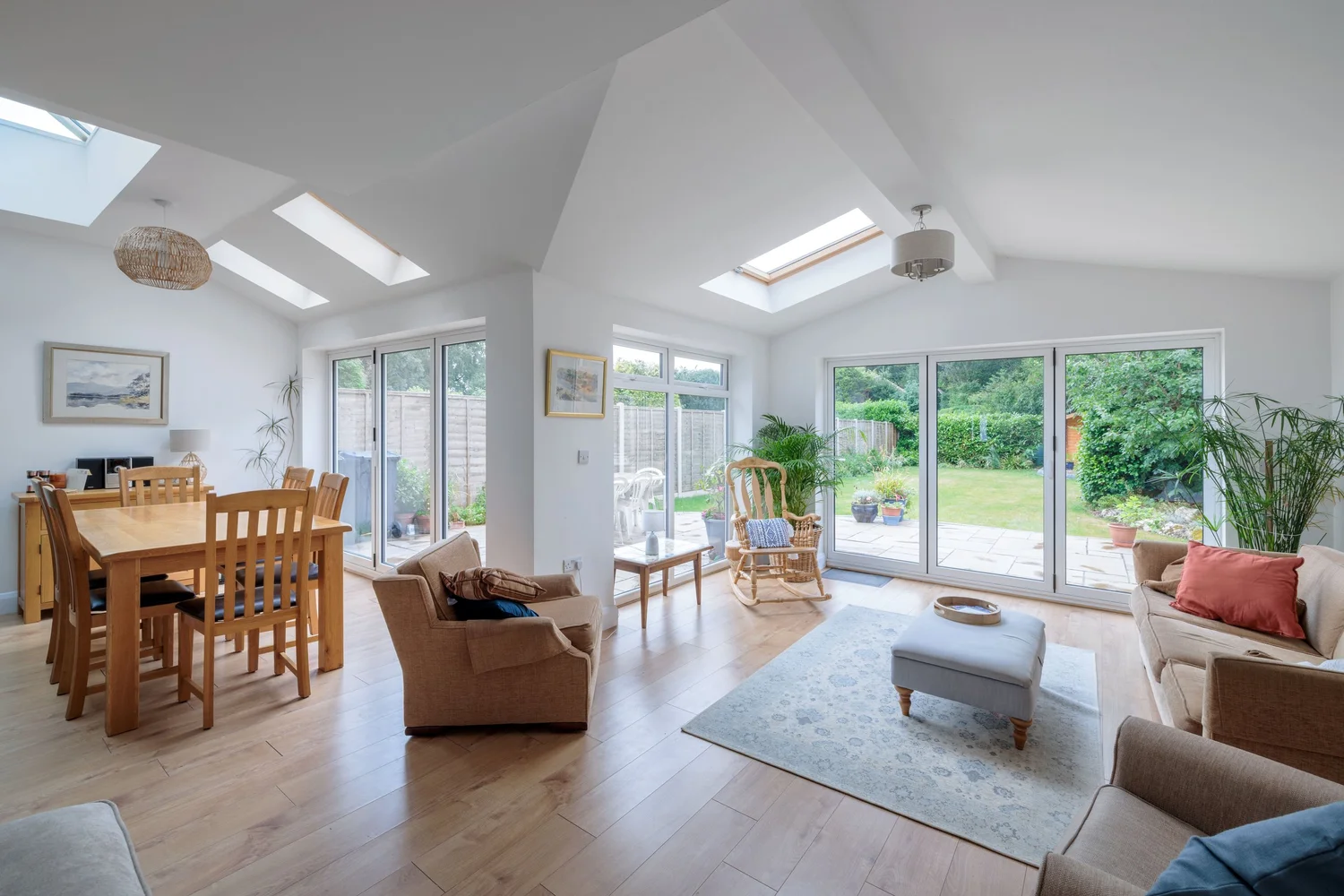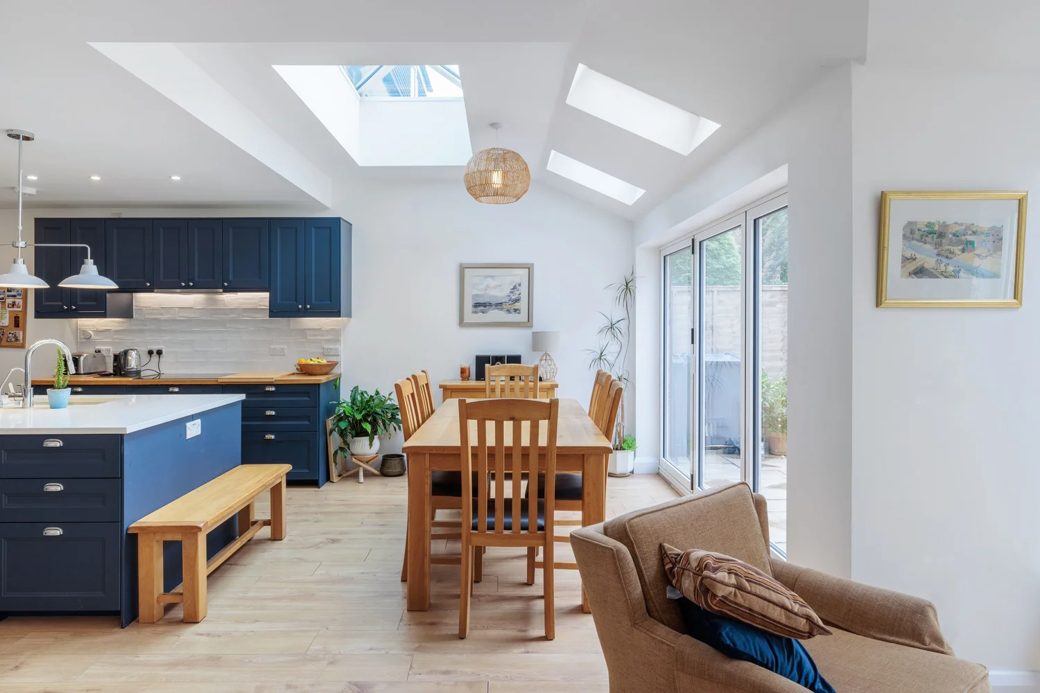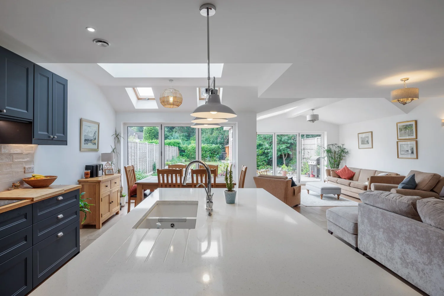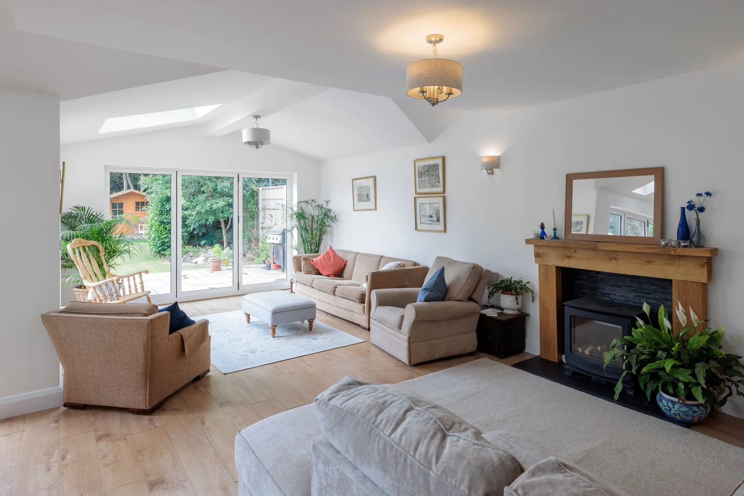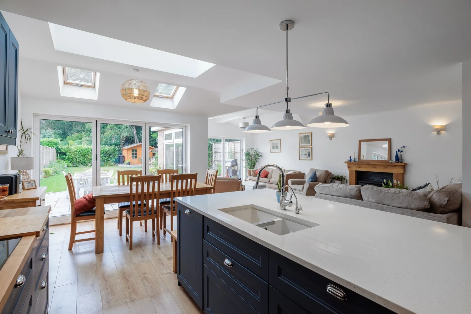 This ultra-modern three-storey home in Mere Green is designed for contemporary living. The open-plan layout creates a seamless flow between kitchen, dining, and living spaces, perfect for both family life and entertaining.