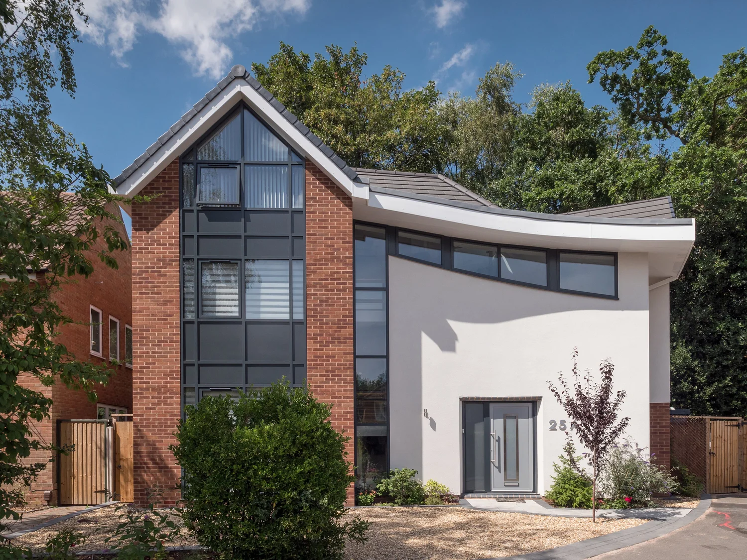 Demonstrating the ultimate result in what can be done with some spare garden space; 25 Mountford, Sutton Coldfield develops on the design of the atypical British suburban home, blended with modernist design cues and playful sources of light. With a well-shaded garden backdrop, the challenge was to draw in as much daylight as possible whilst still maximising functionality of spaces.